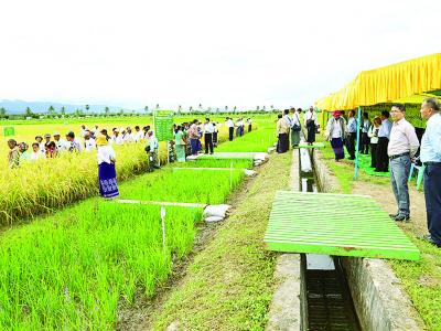 ထို့နောက် ရေနံချောင်း၊ ချောက်၊ ရမည်းသင်း၊ ပျော်ဘွယ်နှင့် နေပြည်တော်ကောင်စီ နယ်မြေမှ တက်ရောက်လာကြသူ တောင်သူ ၉၀ ဦးတို့သည် စိုက်ပျိုးရေးသုတေသနဦးစီးဌာန၊ စပါးသီးနှံသုတေသနဗဟိုဌာနစိုက်ကွင်း၌ မျိုးယှဉ်ပြိုင်စိုက်ပျိုးထားသည့် ရေငတ်ခံစပါးမျိုး ၄ မျိုး ကို ကွင်းဆင်းလေ့လာကြရာ ဒုတိယဝန်ကြီး ဒေါက်တာတင်ထွဋ်နှင့် သုတေသီပညာရှင်များက စပါးမျိုး တစ်မျိုးချင်း၏ မျိုးဗီဇလက္ခဏာများ၊ သဘာဝမိုးရေတစ်မျိုးတည်းဖြင့်သာ စိုက်ပျိုး ထားရှိမှုနှင့် လက်ရှိစိုက်ပျိုးမြေ၏ အစိုဓါတ်အခြေအနေများကို အသေးစိတ်ရှင်းလင်းပြသကြသည်။ ဆက်လက်၍ လေ့လာရေးတောင်သူများသည် စပါးမျိုးတစ်မျိုးချင်းမှ ထွက်ရှိသော ဆန်အား ချက်ထားသည့် ထမင်းများကိုလက်တွေ့မြည်းစမ်းကြပြီး နှစ်သက်ရာ စပါးမျိုးကို မဲပေး ရွေးချယ်ခဲ့ကြကြောင်းသိရသည်။