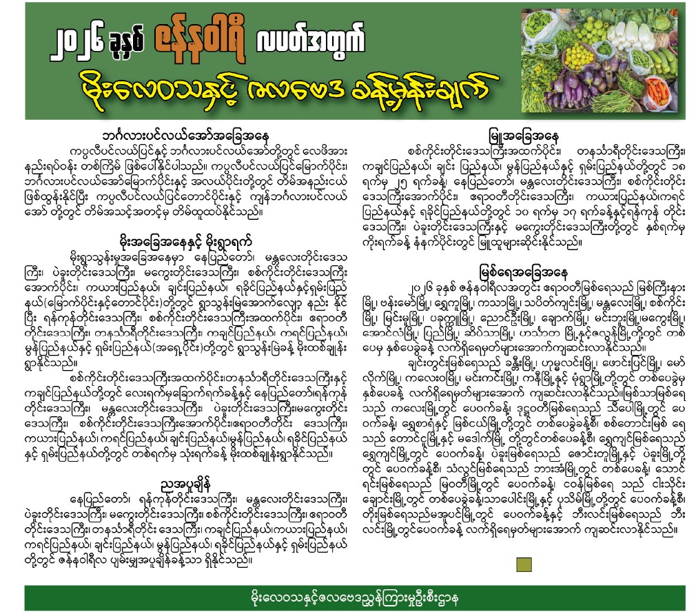 (မန္တလေးပွဲစားကုန်သည် စက်ပိုင်ကထိန်တော်အသင်း၊ ကိုင်းတန်းဈေး၊ သီရိမာလာဈေးတို့မှ ၂၅-၁၂-၂၀၂၅ ရက်နေ့ ကောက်ယူဈေးနှုန်းများဖြစ်ပါသည်။)
