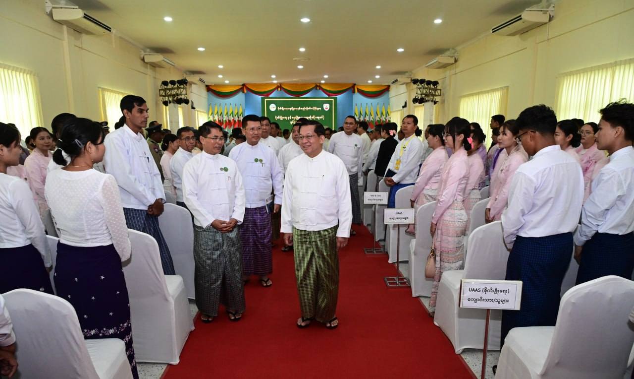 စိုက်ပျိုးရေး၊ မွေးမြူရေးနှင့် ဆည်မြောင်းဝန်ကြီးဌာန စိုက်ပျိုးရေးနှင့် မွေးမြူရေးတက္ကသိုလ် (မအူပင်) ဖွင့်ပွဲအခမ်းအနားအား ယနေ့နံနက်ပိုင်းတွင် ကျင်းပပြုလုပ်ရာ ပြည်ထောင်စုသမ္မတ မြန်မာနိုင်ငံတော်ယာယီသမ္မတ နိုင်ငံတော်လုံခြုံရေးနှင့်အေးချမ်းသာယာရေးကော်မရှင်ဥက္ကဋ္ဌ ဗိုလ်ချုပ်မှူးကြီး မင်းအောင်လှိုင် တက်ရောက်ဖွင့်လှစ်ပေးသည်။