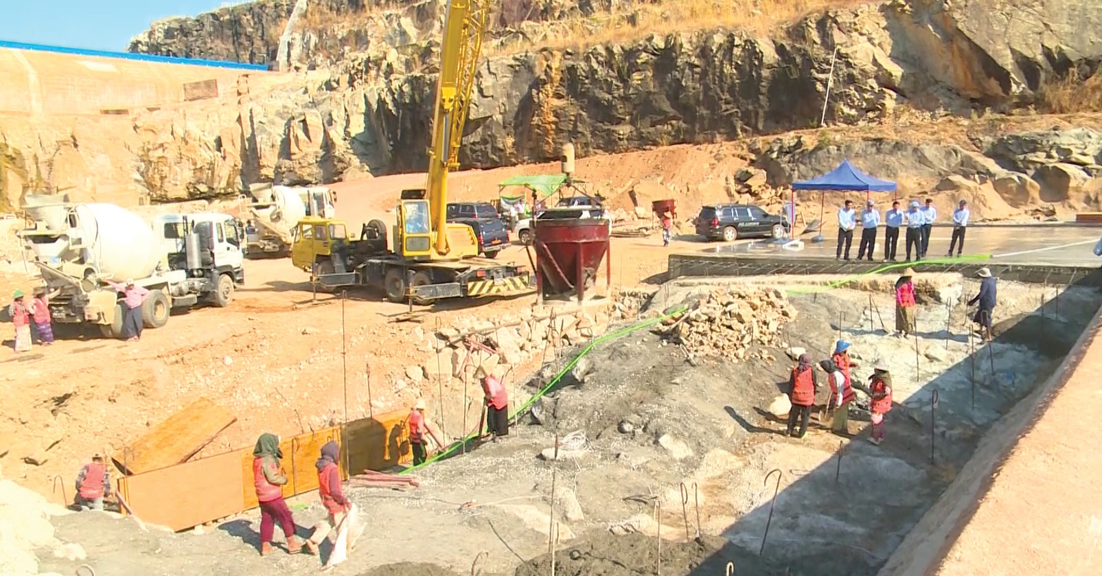 စိုက်ပျိုးရေး၊ မွေးမြူရေးနှင့် ဆည်မြောင်းဝန်ကြီးဌာန ဒုတိယဝန်ကြီး ဦးဗိုလ်ဗိုလ်ကျော်နှင့် တာဝန်ရှိသူများသည် ဇန်နဝါရီ ၂၅ ရက်နေ့ မွန်းလွဲပိုင်းက ပြည်ထောင်စုနယ်မြေ၊ နေပြည်တော် ဇေယျာသီရိမြို့နယ်ရှိ ပေါင်းလောင်းရေလှောင်တမံ၏ ရေပိုလွှဲပထမအဆင့် အောက်ဘက်ပိုင်း၏ အပိုင်း(၁)ပြန်လည်ပြုပြင်ခြင်းလုပ်ငန်း ဆောင်ရွက်ပြီးစီးခဲ့မှု အခြေအနေနှင့် ယခုပွင့်လင်းရာသီတွင် ရေပိုလွှဲပထမအဆင့် အထက်ဘက်ပိုင်း၏ အပိုင်း(၂)ပြုပြင်ဆောင်ရွက်နေမှု၊ ပေါင်းလောင်းတမံ ကြံ့ခိုင်မှုအခြေအနေများ၊ ရေဝင်ရောက်မှု အခြေအနေနှင့် ရေသိုလှောင်ထားရှိမှု အခြေအနေများကို ကြည့်ရှုစစ်ဆေးသည်။