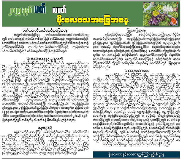 ပြည်ထဲရေးဝန်ကြီးဌာန၏ ကိန်းဂဏန်းများအရ ဇန်နဝါရီလအတွင်း ဟင်းသီးဟင်းရွက်ဈေးနှုန်းများ ၃၆ ရာခိုင်နှုန်းအထိ မြင့်တက်ခဲ့သည်ဟု ဆိုသည်။ ဂေါ်ဖီထုပ်နှင့် မုန်ညင်းဖြူဈေးနှုန်းများ နှစ်ဆနှင့် သုံးဆအထိ မြင့်တက်ခဲ့သည်။